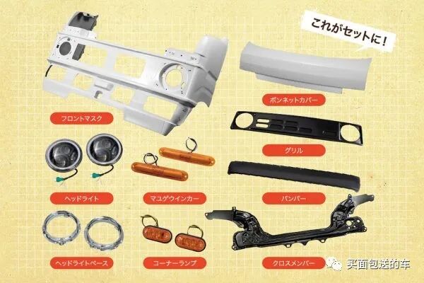 套件包括适配新外壳的前金属龙门架,灯具,以及复古中网和前杠。