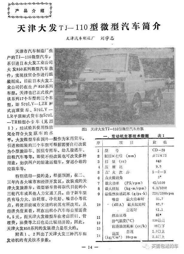 1984年9月25日,的天津华利汽车制造厂与岛国的大发汽车株式会社采用CDK组装的模式引进大发第六代Hijet 850,而推出的大陆第一款轻自动车产品天津大发TJ110,需要说明是第六代Hijet 850 的VAN 面包车款型,其实就是第一代ATLEY(好比CARRY 的VAN款式单独称为EVERY 一样),ATLEY除了封闭式的车身,配置和定价都比拉货的HIJET高。