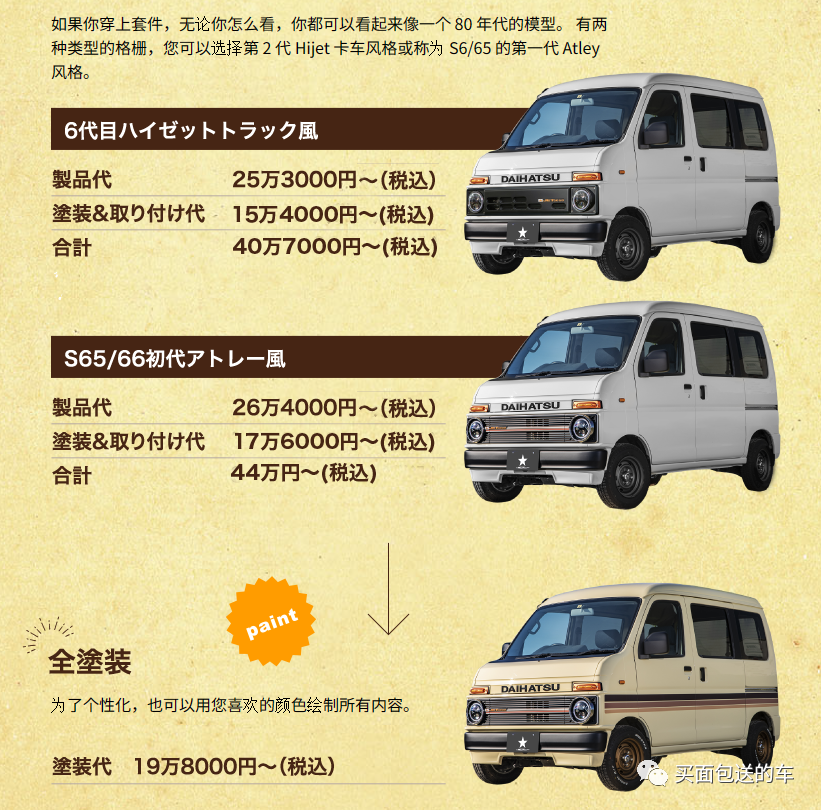 JET GOGO 套件能让2004年到现款的HIJET/ATLEY车头变为初代ATLEY经典款式。