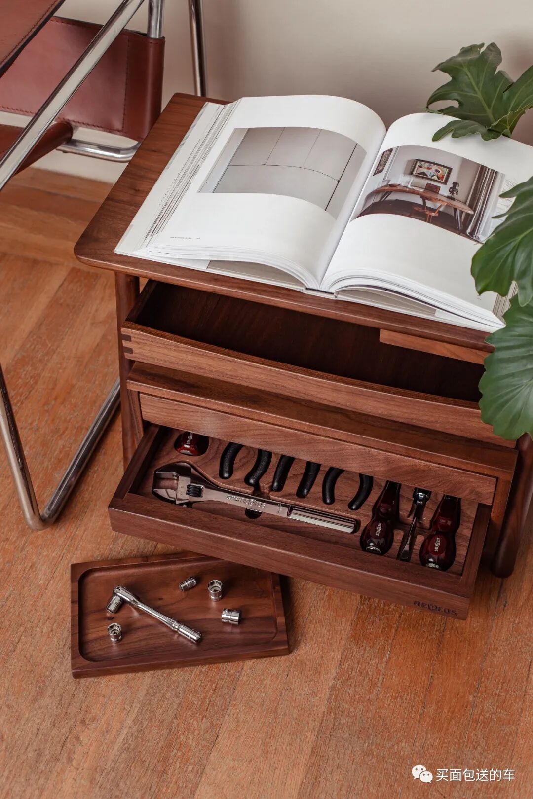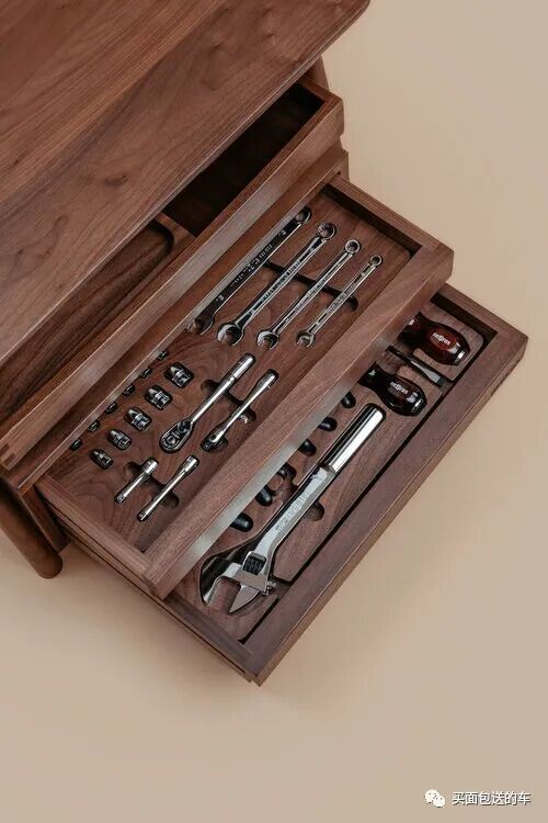 产品面向客户群体为经典赛车与改装的发烧友,KYOTO还推出了数控雕刻黑胡桃木材质的工具收纳柜,柜体和工具套装价格是3410美元。