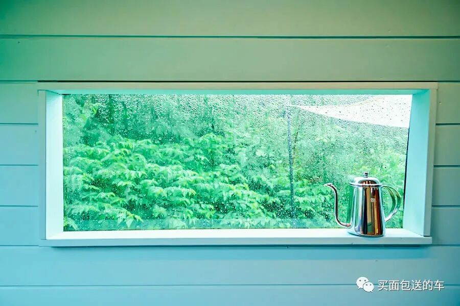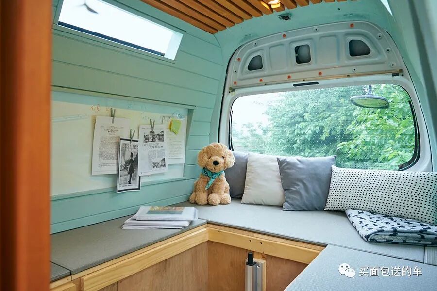 利用原车的D柱的玻璃窗制作的窗台,涂覆了马卡龙色。