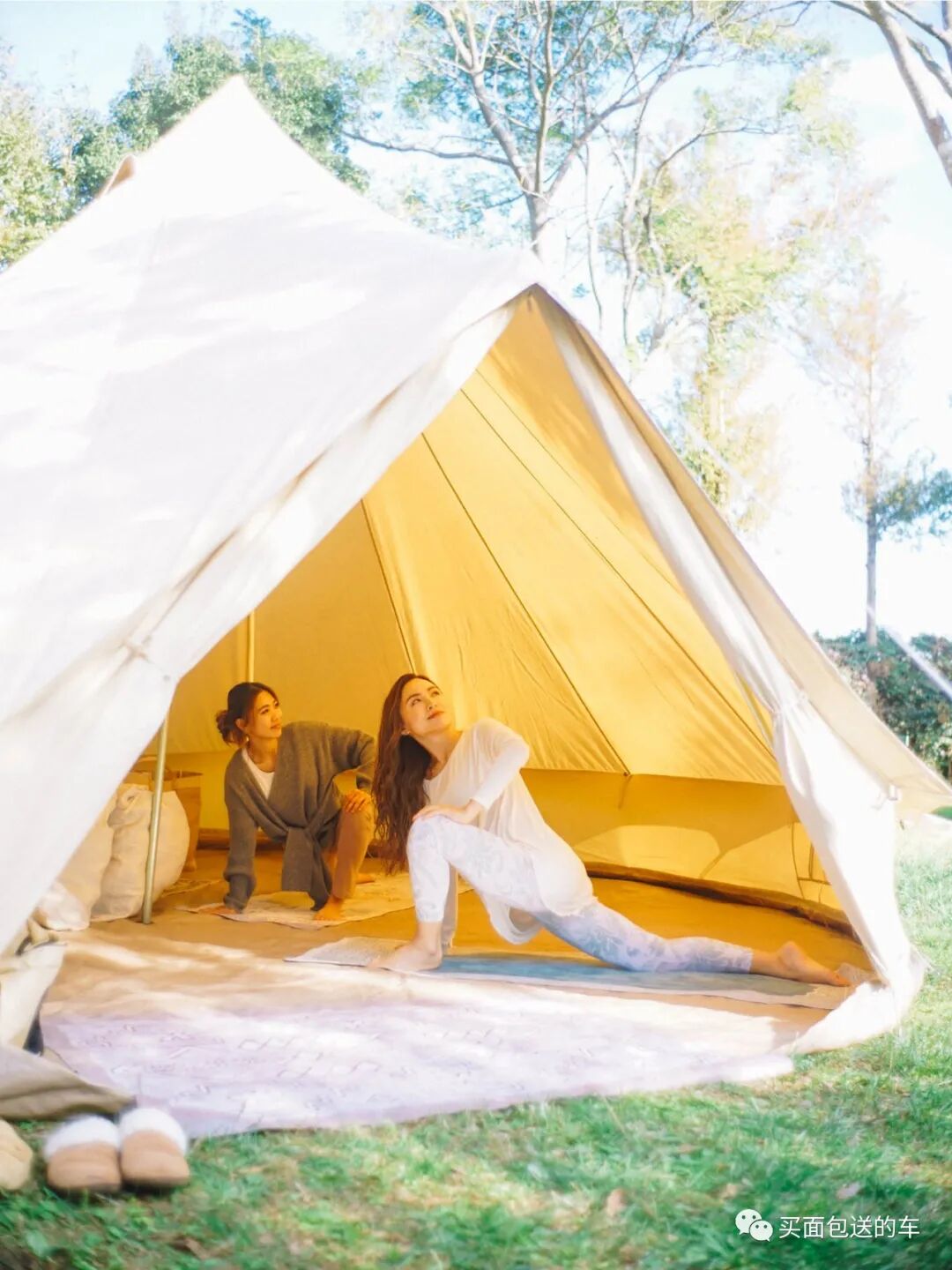 阳光开始变强烈,让我们进入帐篷内部继续运动吧。