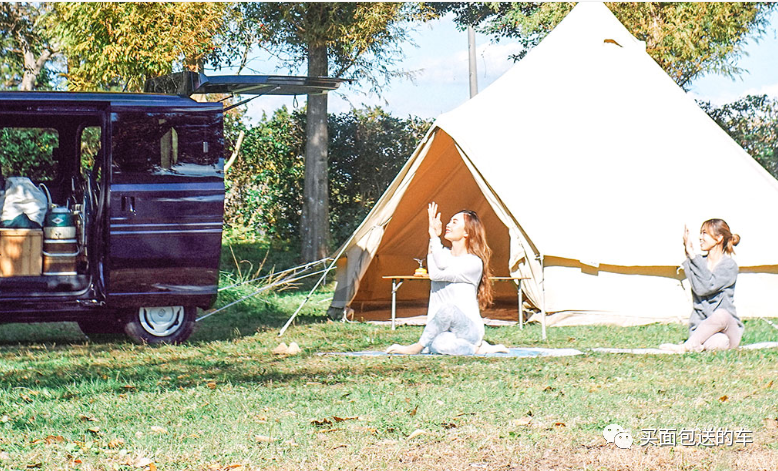本田在HONDA ASOBI BASE 活动中,由知名模特 里宫茜 和摄影师 由莉 两人的户外瑜伽项目,选择本田N-VAN轻自动车并在户外搭建瑜伽营地。