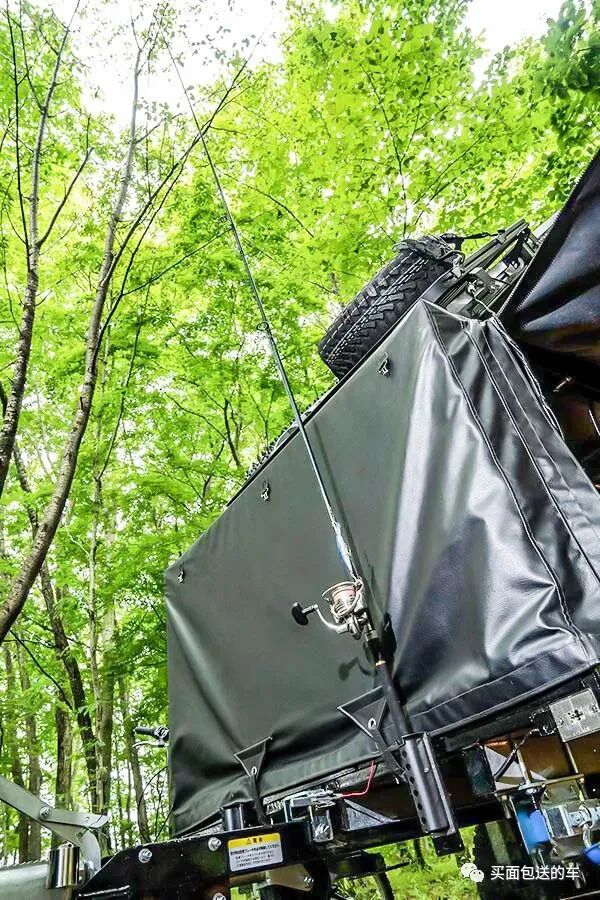 拖车的前方安装了鱼竿支架,利用牵引车尾部和拖车前部的空间可以对打尺寸装备行李起到保护作用。