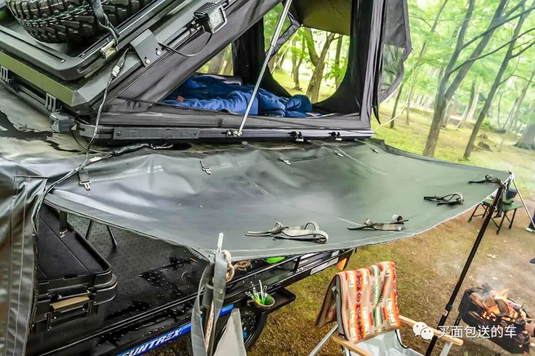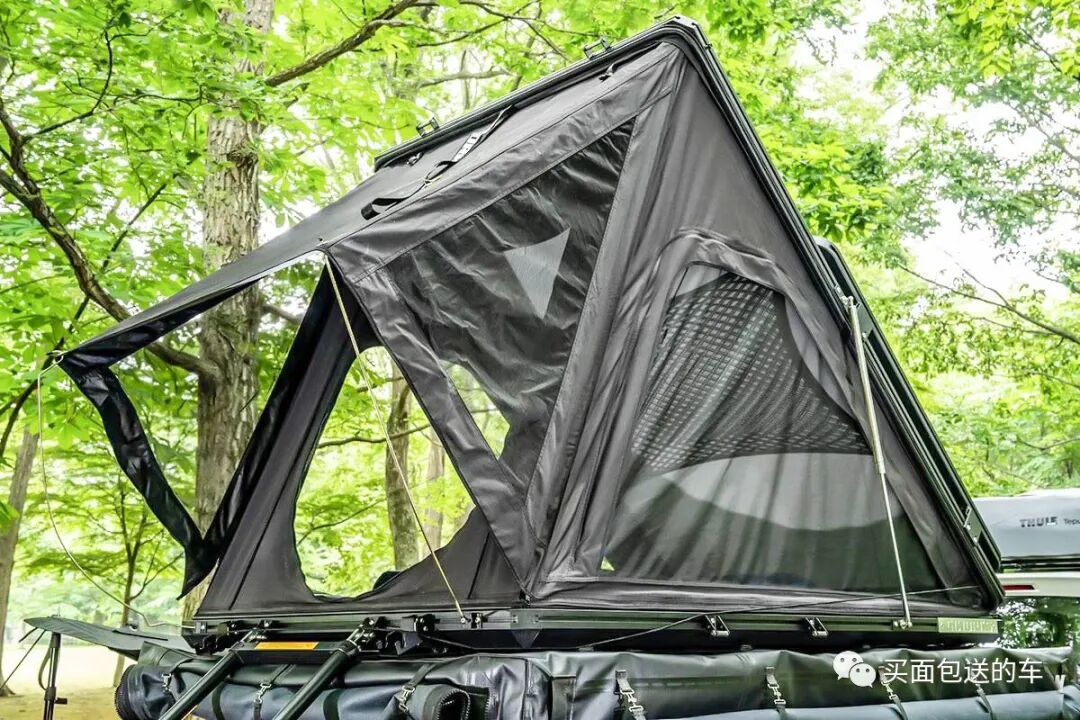 展开后的车顶帐篷,比“车中泊”有更好的透气性。