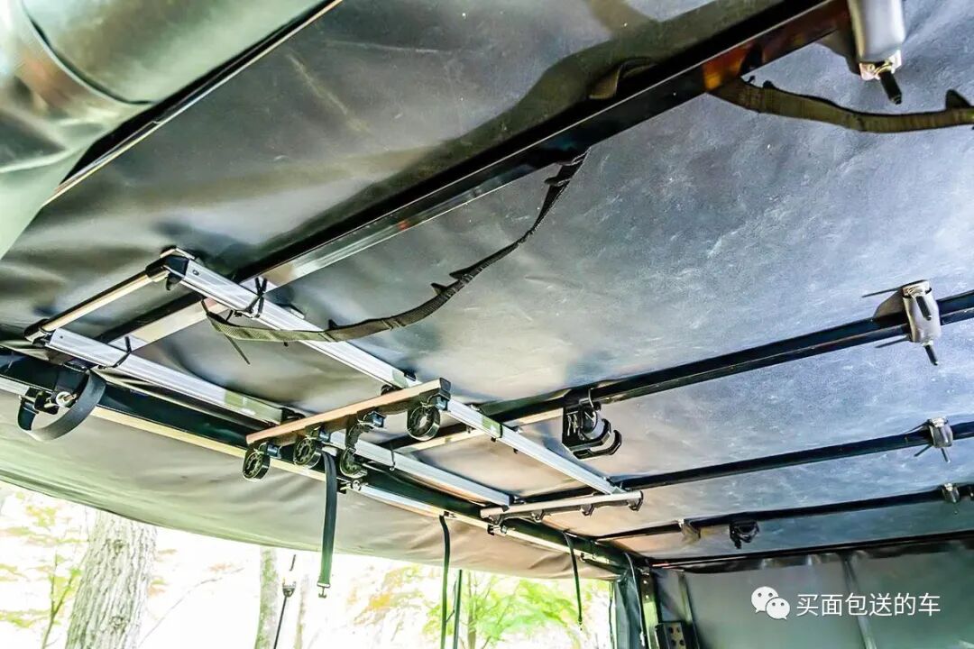 拖车的天花板可以收纳长尺寸的梯子或是钓鱼杆。