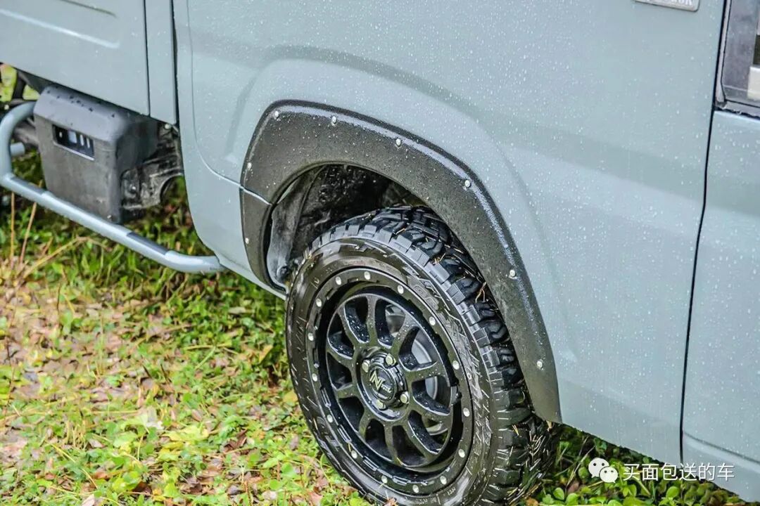 更换为15英寸的铝轮毂,以及MT轮胎,底盘做了1.5英寸的提升