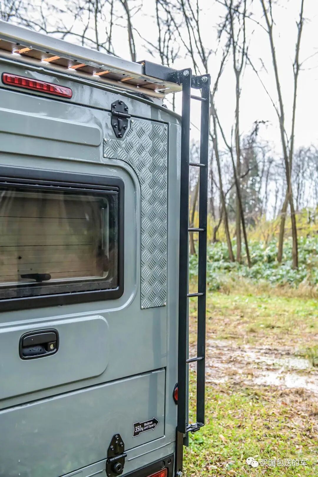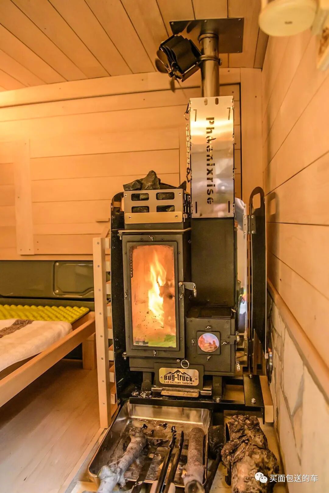 在尾门处加装了排烟管道,以方便在车内安装露营柴火炉。