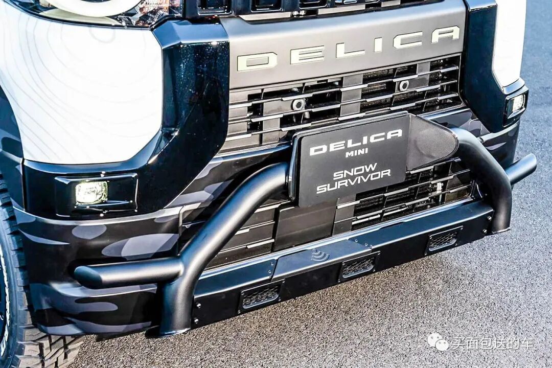 DELICA MINI在前脸上,采用卡通设计,除了D型的前保险杠中网和DELICA D5类似外,圆灯造型让前脸看上去像一只恶犬。
