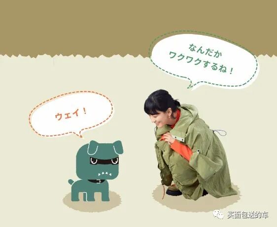 水川麻美在DELICA MINI的官方主页中,和一只绿色的卡通狗(小编称为 “恶犬”)互动对话。