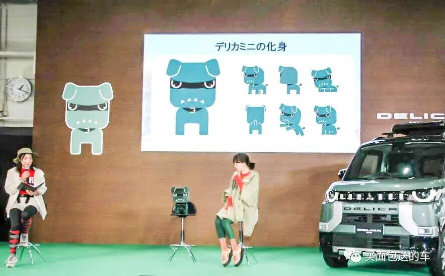 三菱汽车并未为这种卡通犬设计IP名称(可能后面会称为 “德利卡丸”),在广告CM短片中,这只二次元恶犬变成了可以动的布偶。