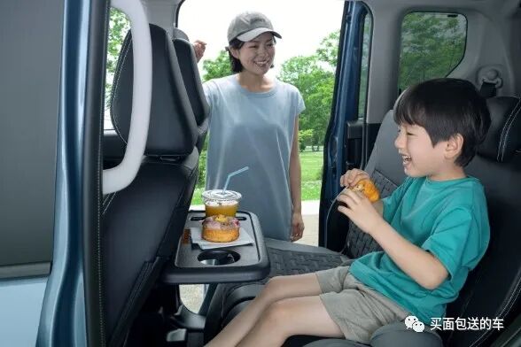 第一排座椅的后备设置有小折叠桌板,方便后排吃饭。