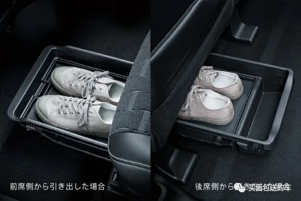 DELICA MINI座椅下面的鞋盒子,是可以前后伸缩 收纳的,(小编还是感觉北斗星的菜篮子好用)。