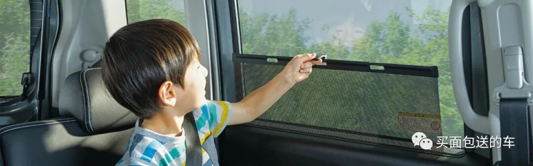 第二排车窗集成了遮阳帘机构。