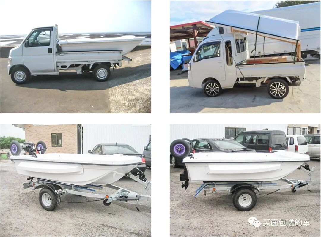 Asuboya 27 plus和大发 Atley 为丰田的贴牌车型Pixis作为陆上移动载具,可见车顶船和车顶之间的尺寸相当契合。