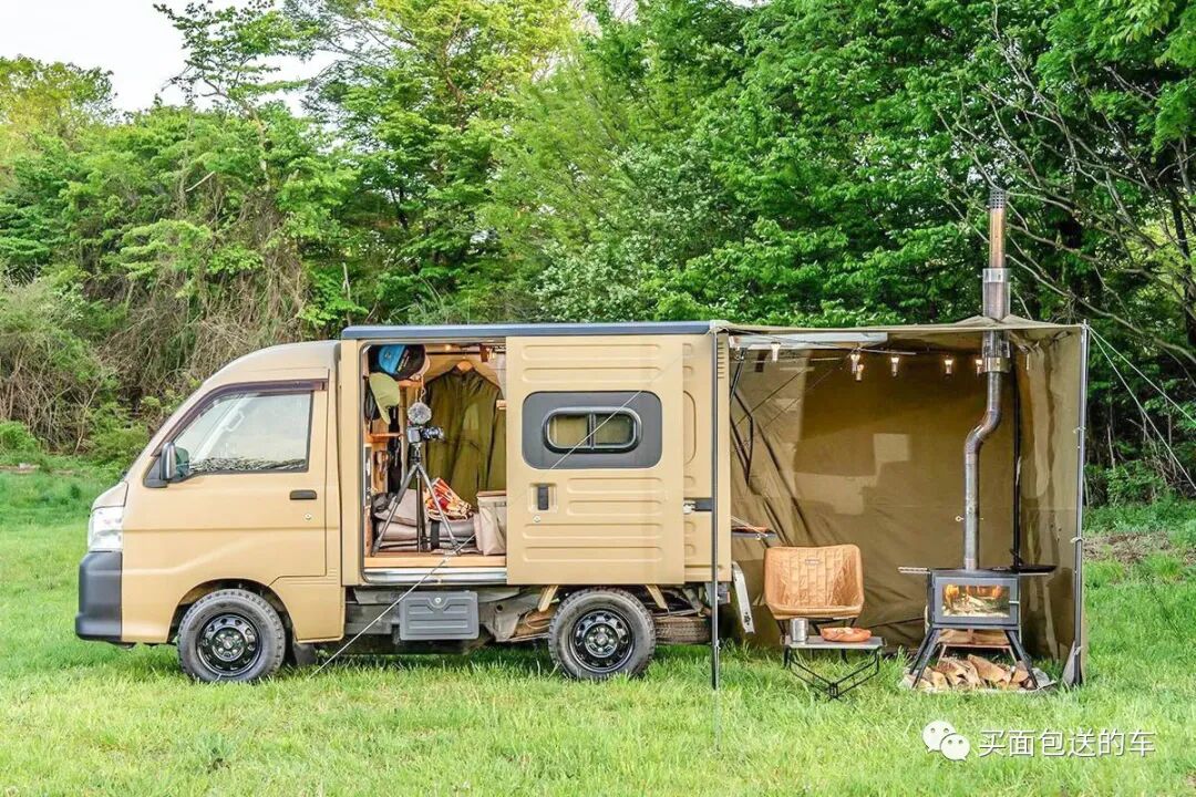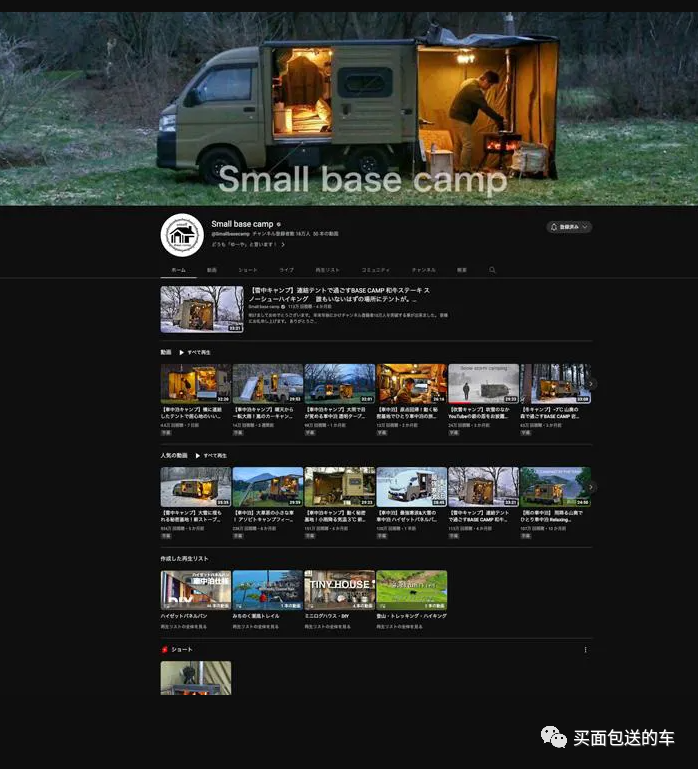 在油管上观看数量超950万粉的SMALL BASE CAMP,是岛国岩手县的Chochoi先生利用大发HIJET TRUCK PANEL VAN 在轻卡上改装的板箱式货车改装露营车,在SNS社交网络上引起巨大反响。