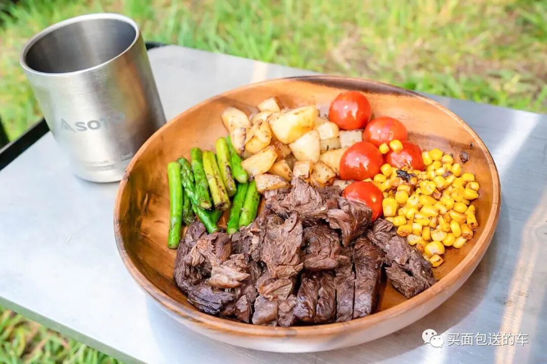大A的木制餐盘与SOTO的钛合金保温杯。