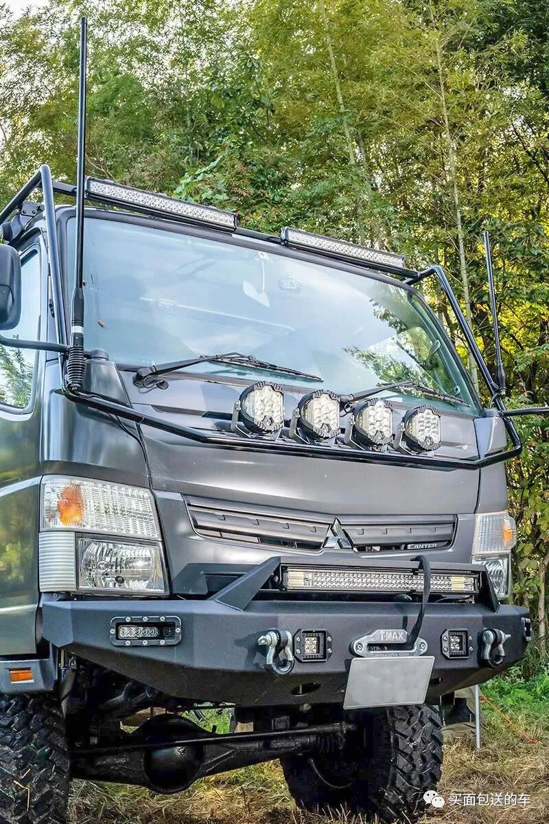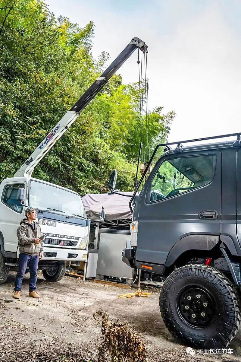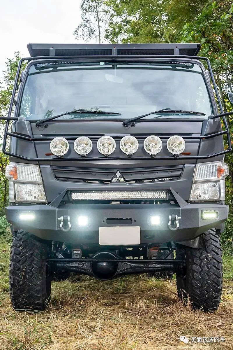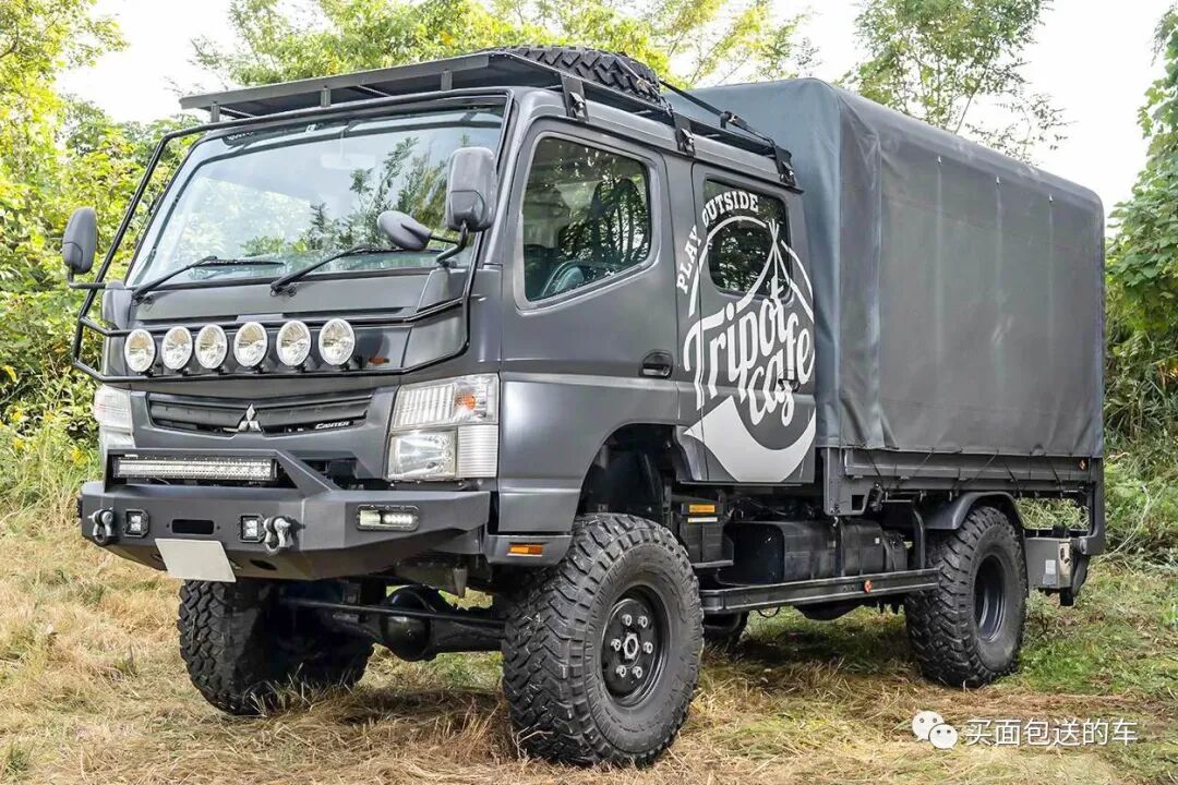 因为长期从事食品批发物流需要,玩家HITORI先生对FUSO.CANTER卡车的柴油动力可靠性与强悍的四驱底盘性能了如指掌,并选择二手第八代FUSO.CANTER做改装平台(为什么不是最新的第九代?除了改装的性价比,第九代车型没有双排座款型,这给车中泊带来了限制)