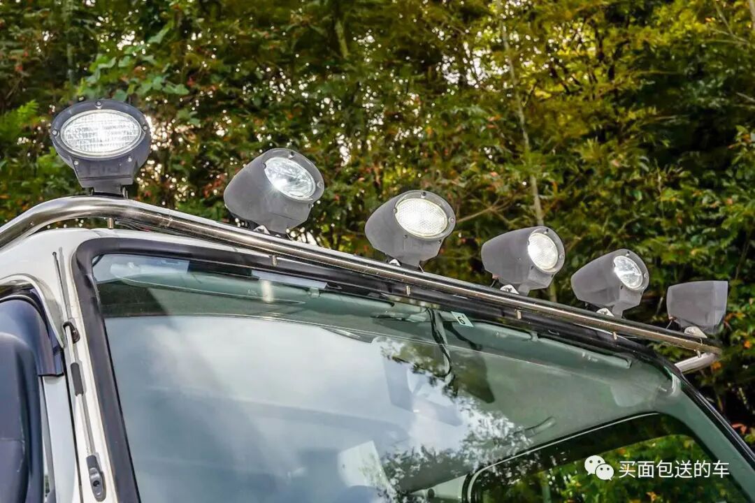 在驾驶室前方安装的钢管机架,除了在丛林穿越时保护玻璃,也能拓展更多的外挂设备,HITORI先生就在车头加装了电台天线和拉力灯。