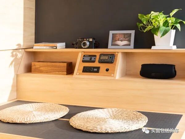 这个“榻榻米”地席板向上打开,就能展开双人床铺。