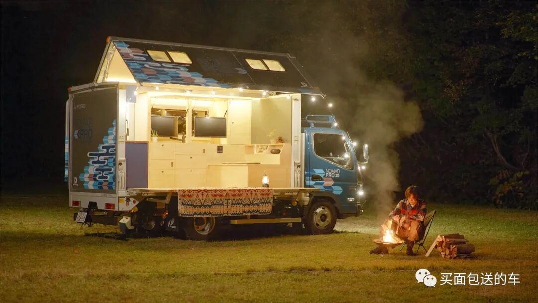 NOMAD PRO是三菱扶桑品牌下推出的移动办公露营车,在2020年口罩病期间,抓住了隔离期间城市白领远程办公的需要,主打一个“Driving Force For Work Life Balance工作和生活”的平衡。