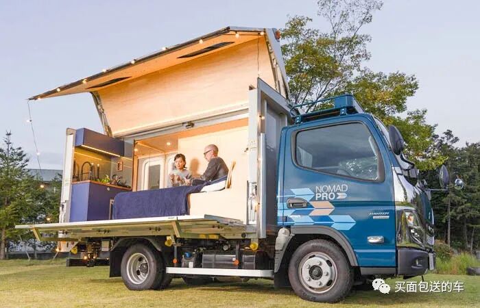NOMAD PRO CANTER的特色是在标准扶桑FUSO CANTER卡车上加装了电动推杆驱动的"上下蚌开式"箱体,并在箱体内集成家居与办公设备,但是没有独立的卫生间,所以它依然归于露营车范畴。