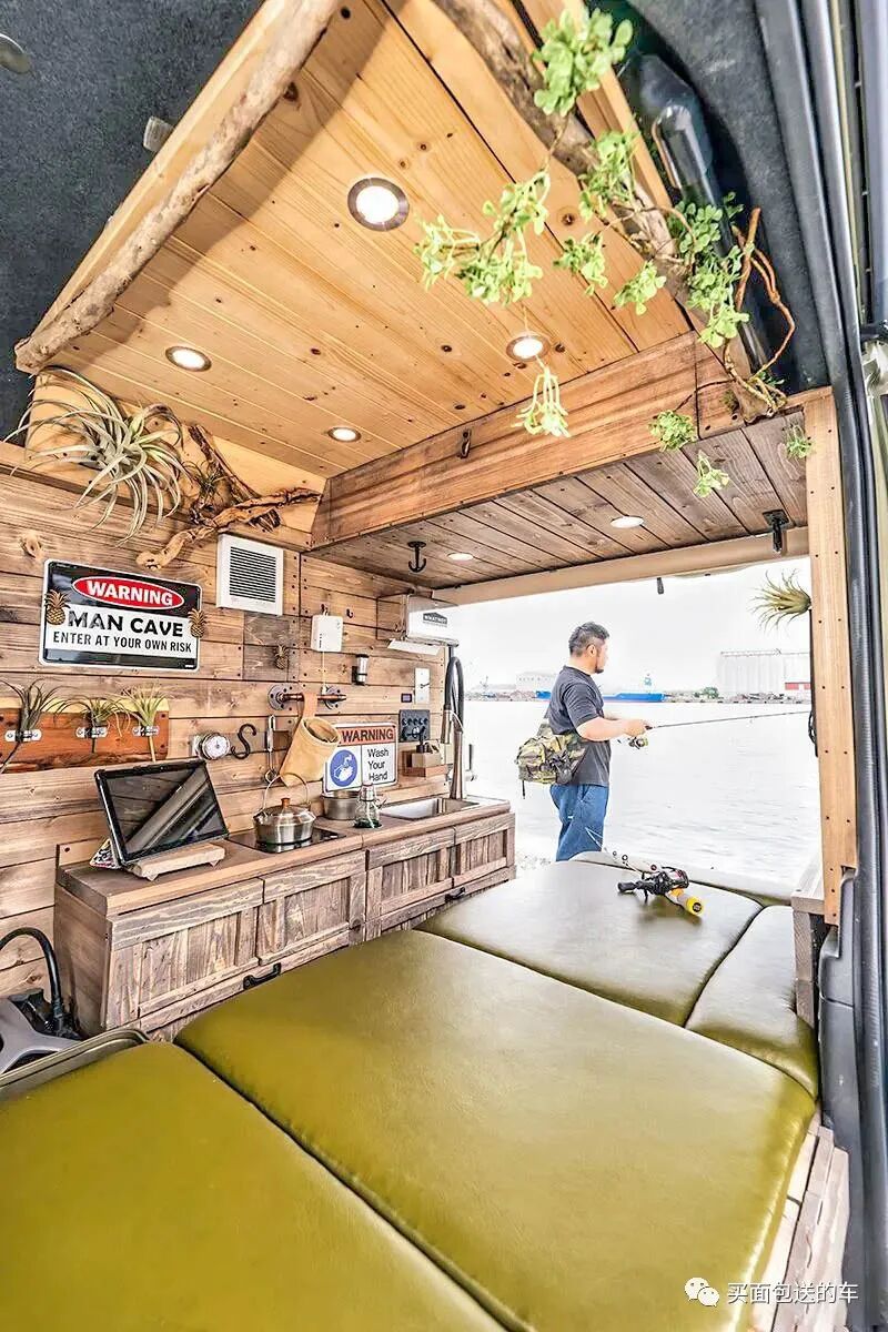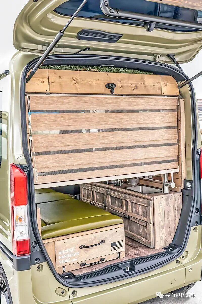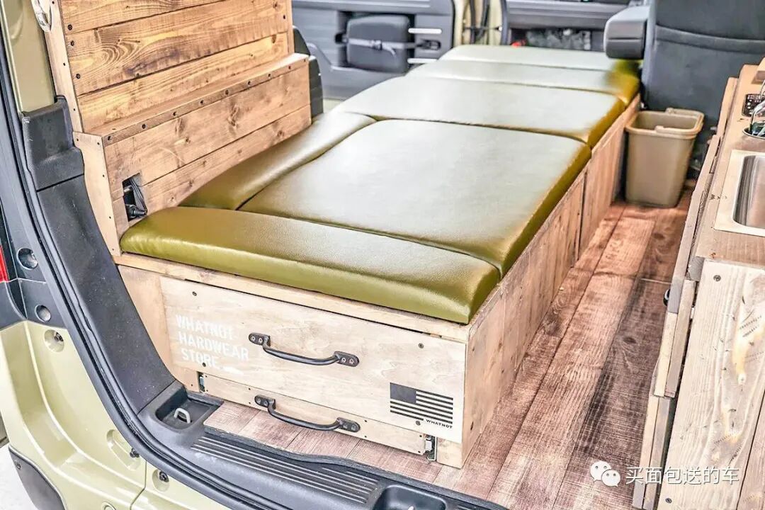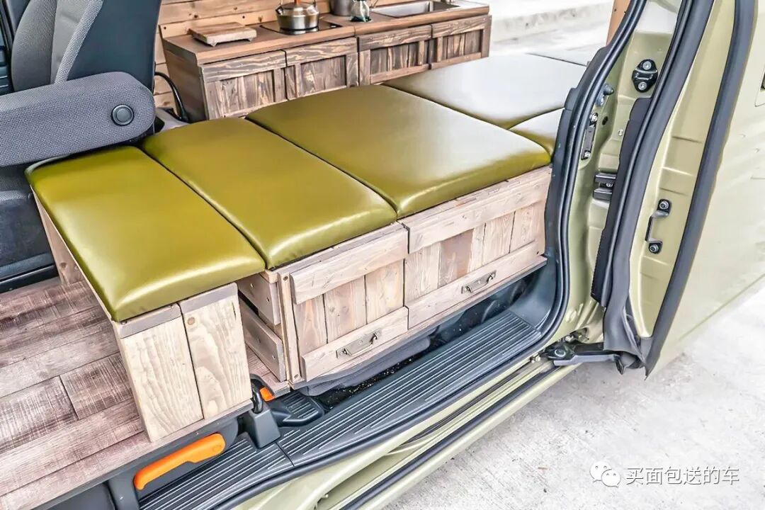 本田N-VAN轻自动车具有无B柱车身设计的空间优势,兵库县的玩家 直也先生只改装了原车的轮毂和轮胎,特色 直也先生动手为其打造的复古内饰,满足了钓鱼装备的携行和 车中泊的需要。