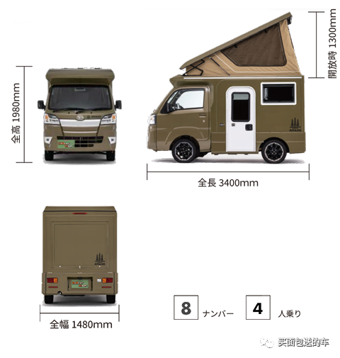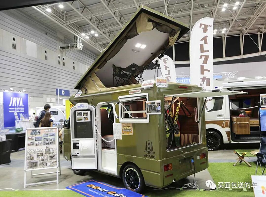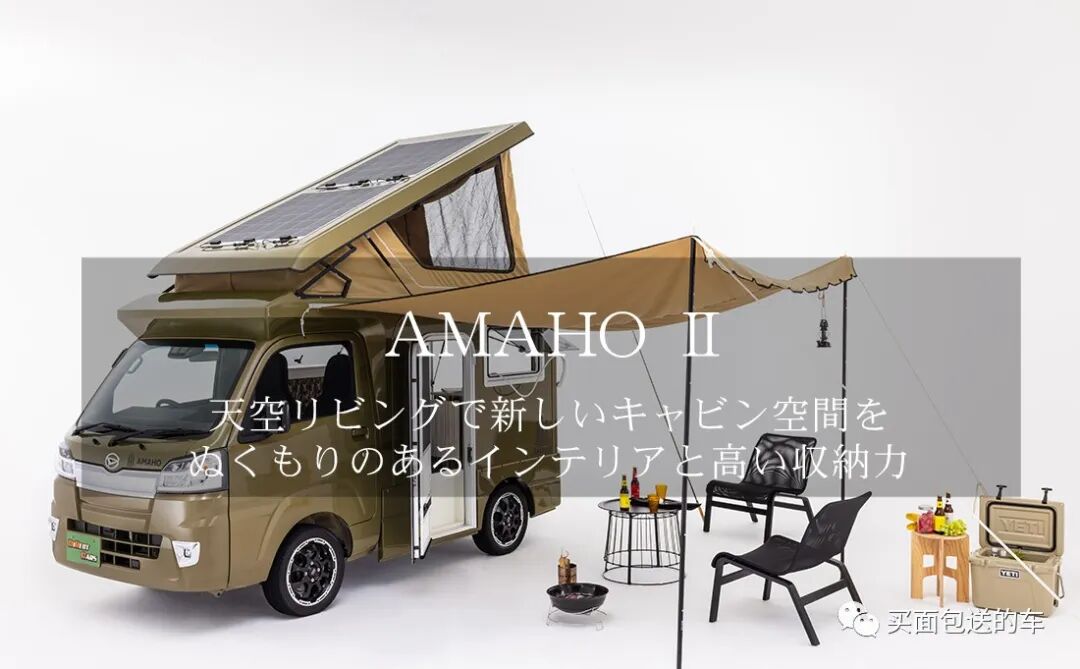 这是岛国"Direct Cars”改装定制并用于租赁业务的轻卡露营车“AMAHO II”,原型车为大发的HIJET 轻卡基本型,最大的改装设计亮点为全开式的车顶升顶帐篷,号称“户外移动观星台”。