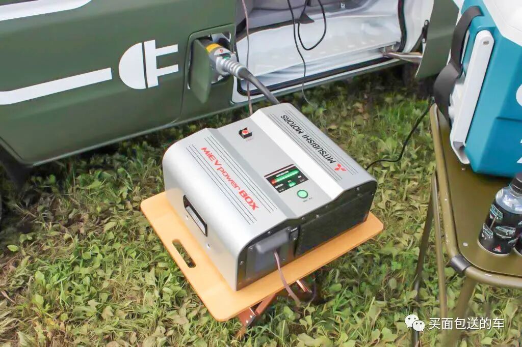 三菱通过这个直接的MIEV POWER BOX 模块将车上的锂电模组330v高压直流电力转换为110V交流市电,最大功率为1500W,可见这不是通用的露营用逆变器模组。