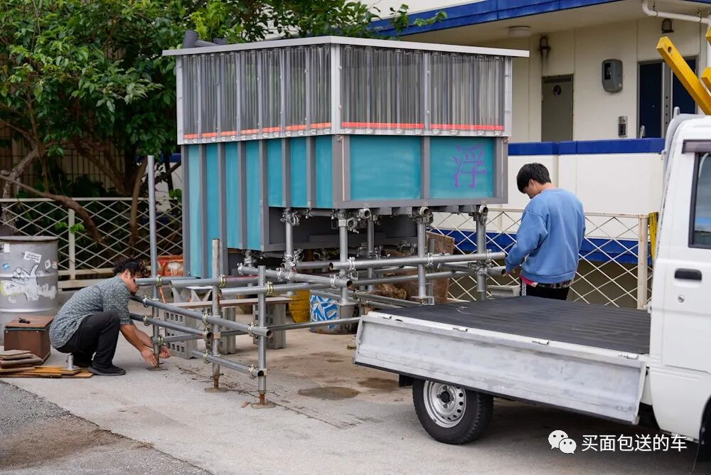 “如果有良好的市场反应和合适的地点,我们会用预先设计好的脚手架将这些桑拿房模块固定在景点位置。而现在为了适配这个阶梯式的箱底,需要复杂的脚手架才能安装固定在轻卡尾箱上。”