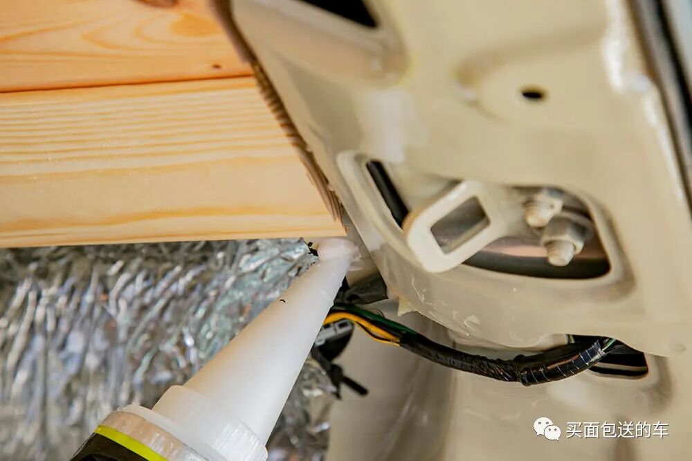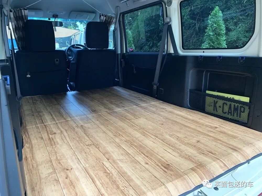 最后完成的“假木质地板”效果,用便宜的方案获得了一个平坦且隔热的车底板。