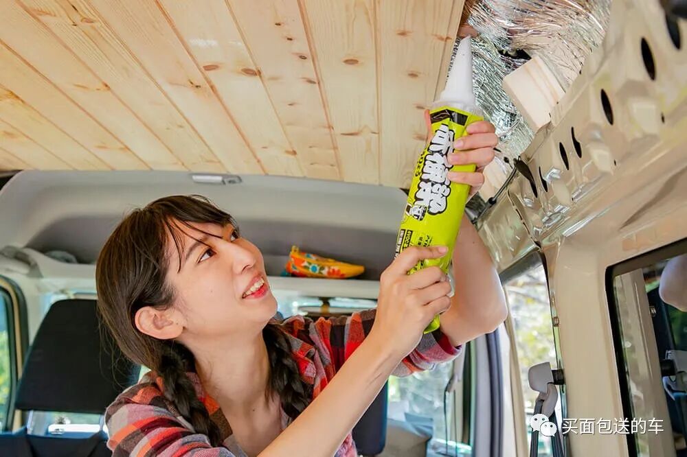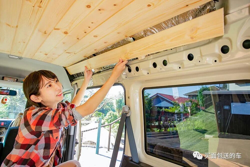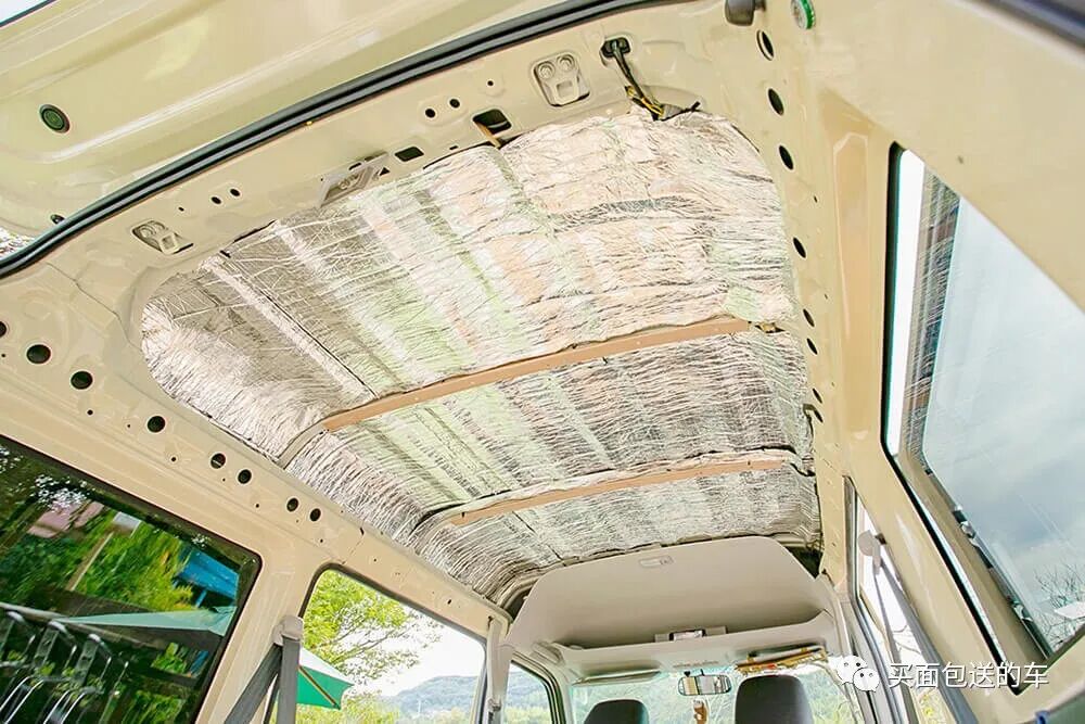 天花板最后完工的样子,下期内容我们将分享在车内加装柜体的内容,谢谢关注(完)。