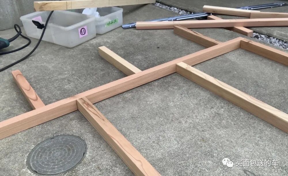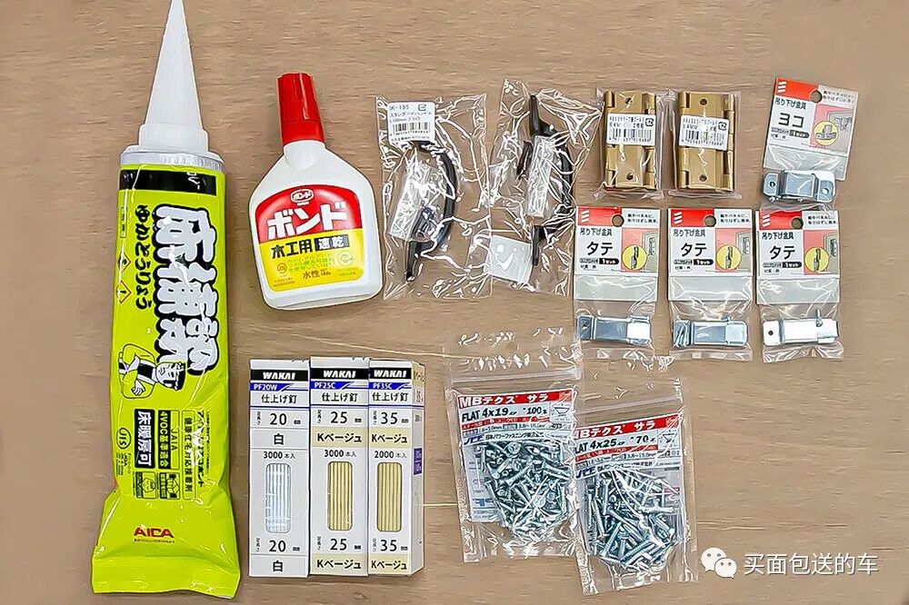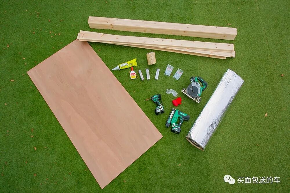制作柜体的大板材和制作天花板的成品木条是本次改装主要使用的材料。