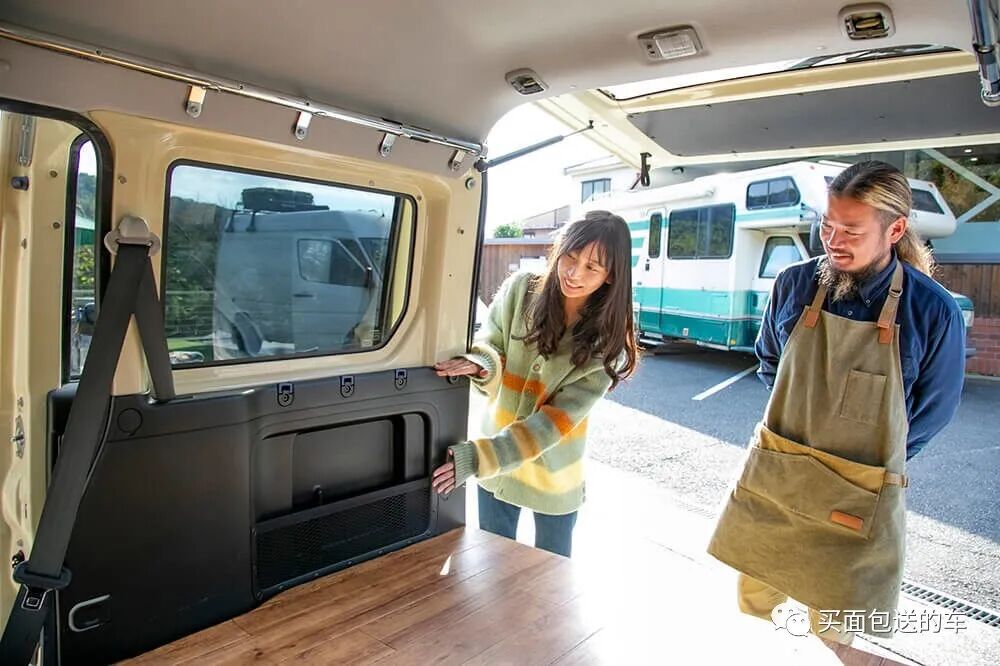 作为露营车,面包车有非常宽大的内部空间,地板面积约等于1.2张榻榻米,内部高度达到1.2米的车顶也非常适合在车内更衣。