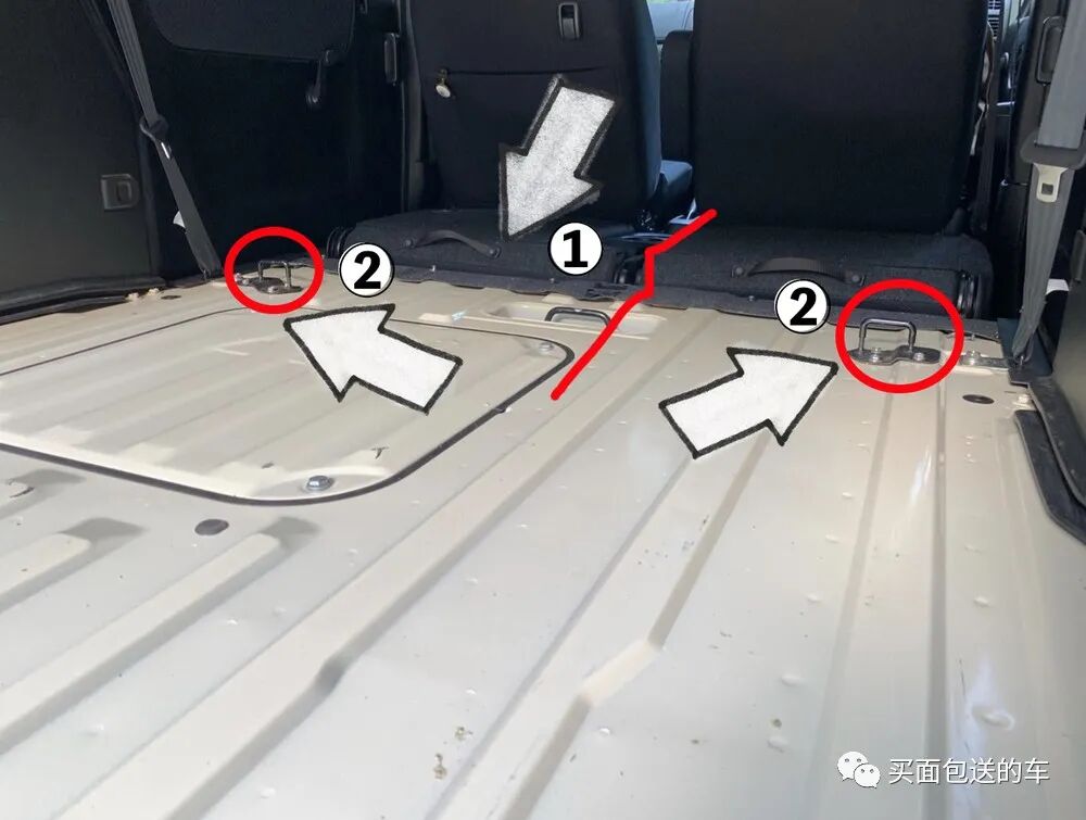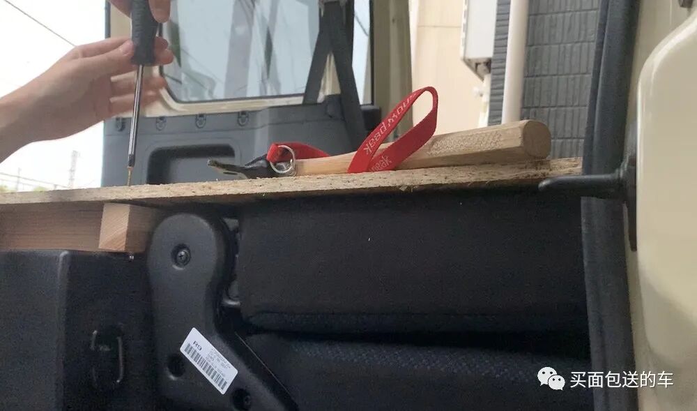 第二排座椅与后备箱之间的高度差用这个木质隔板层补齐。