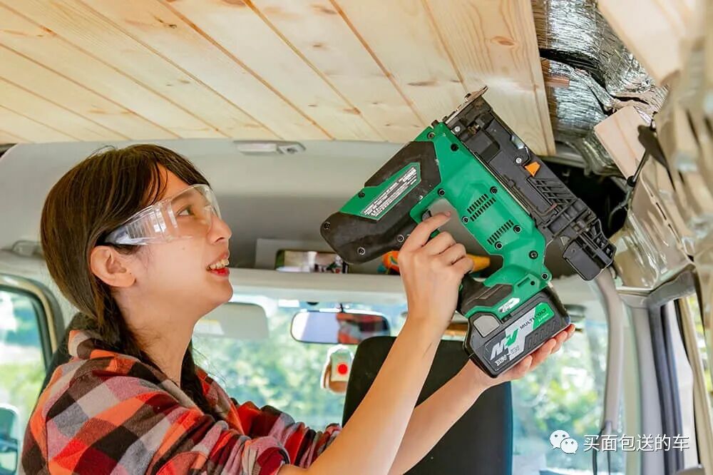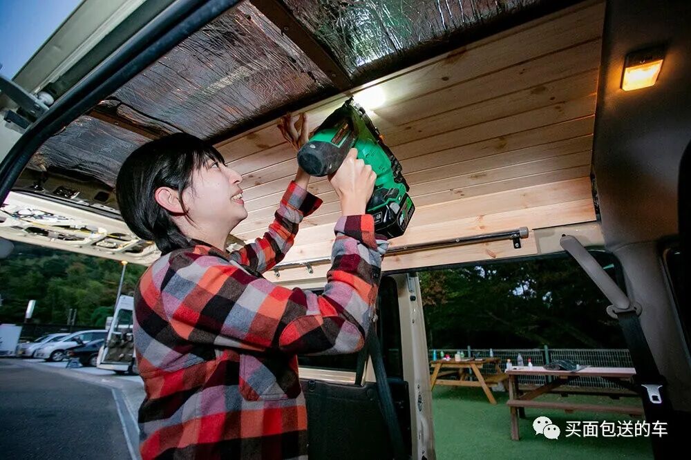 接下来在露营车建造大师-铃木大一 的指导下,开始制作木质天花板和车内的柜体。