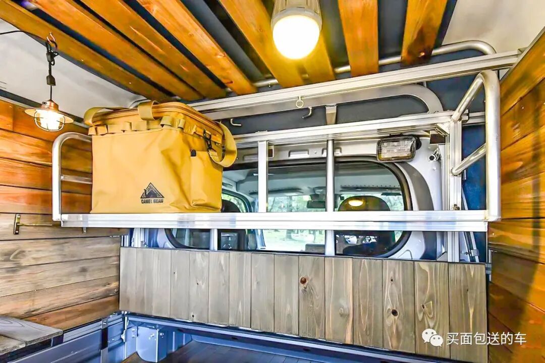 后尾箱的框架结构由铝合金型材导轨组件搭建而成,比起完全硬质的房车车厢,成本和重量会有很大的优势,零部件也适合物流运输和拆装。