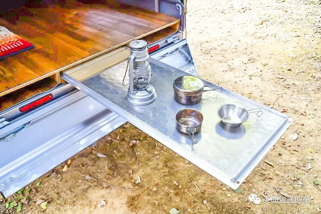 这种在尾货箱空间利用防水布搭建帐篷的改装方案,可参阅往期文章:
