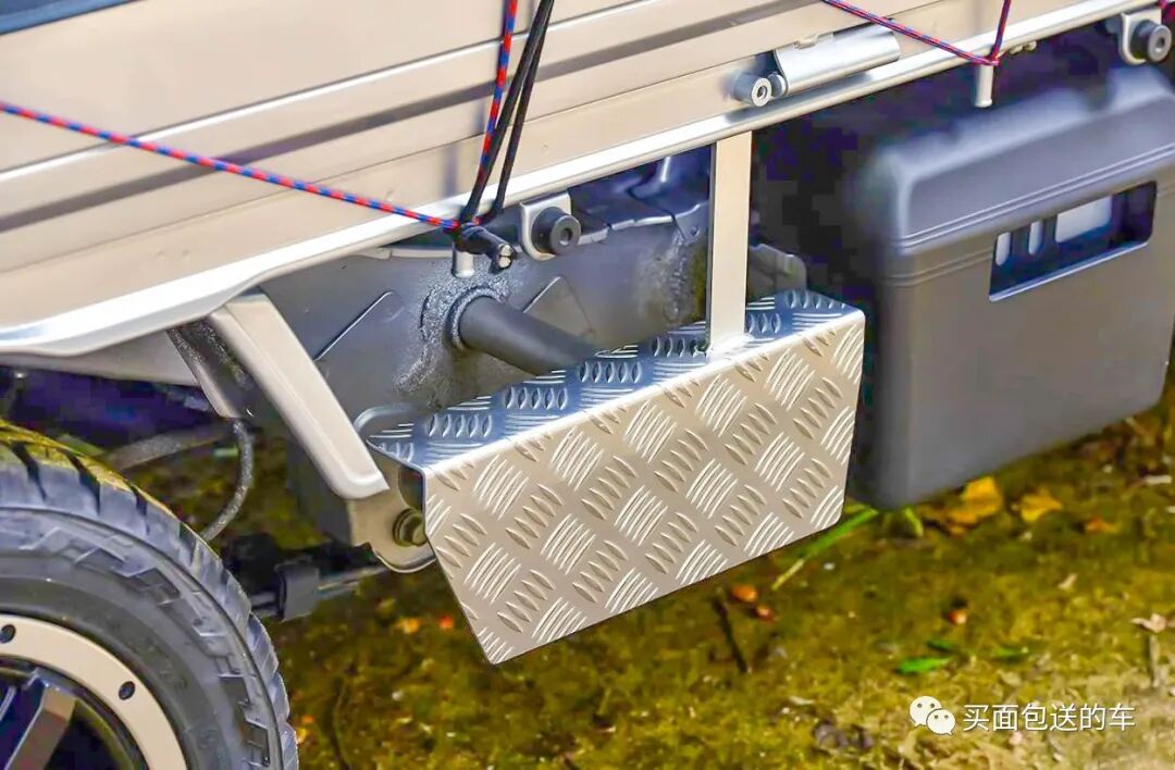 轻卡大梁边的脚蹬防滑板,也可以作为户外水箱和驻车电源的安装空间。