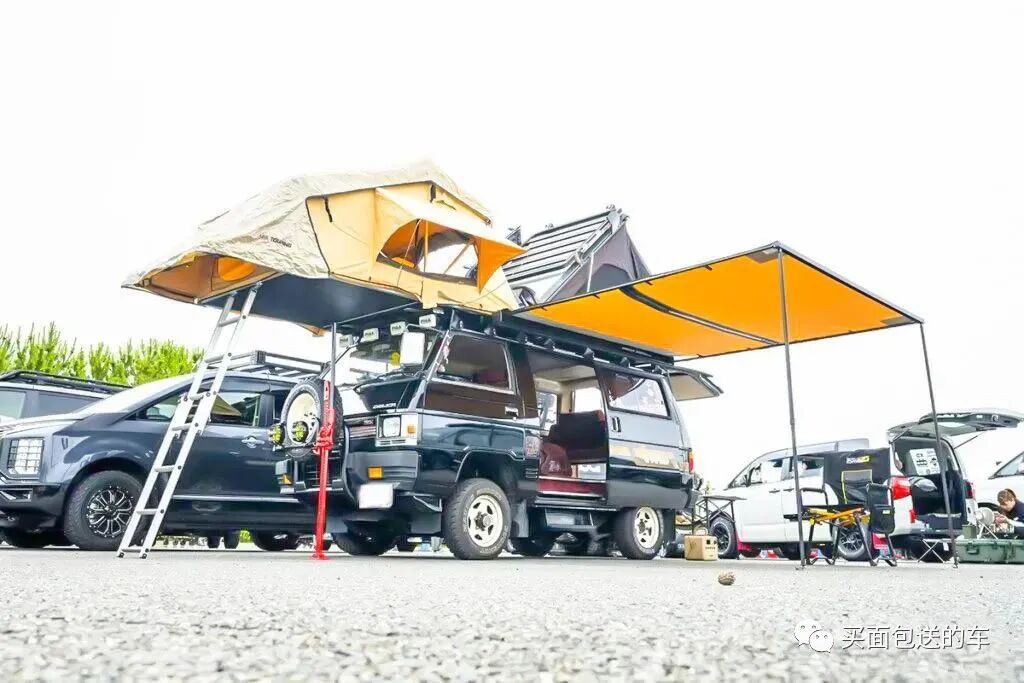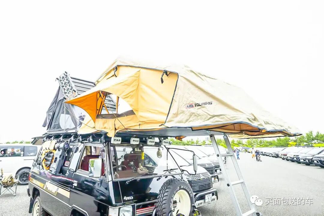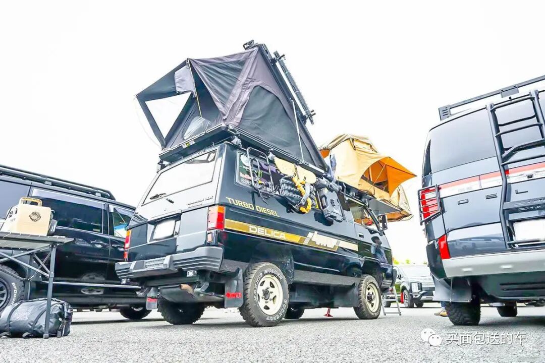 这是2023年DDR 德利卡大会上的改装作品,30多年前的第三代德利卡Delica Star WagonL300四驱柴油版改装的露营车,亮点在加装了两个折叠帐篷,最大限度利用车顶和车侧面的空间。