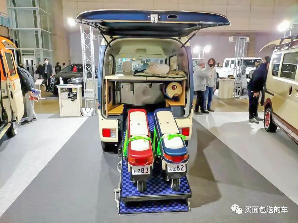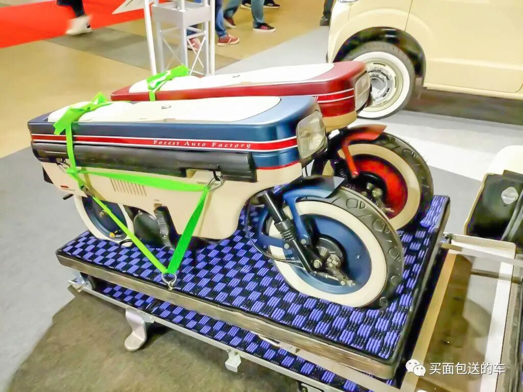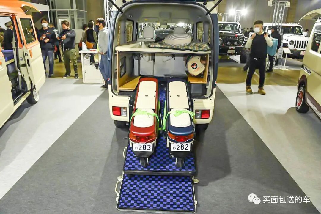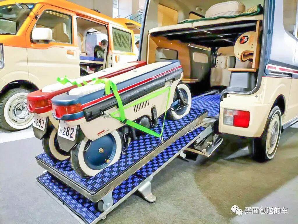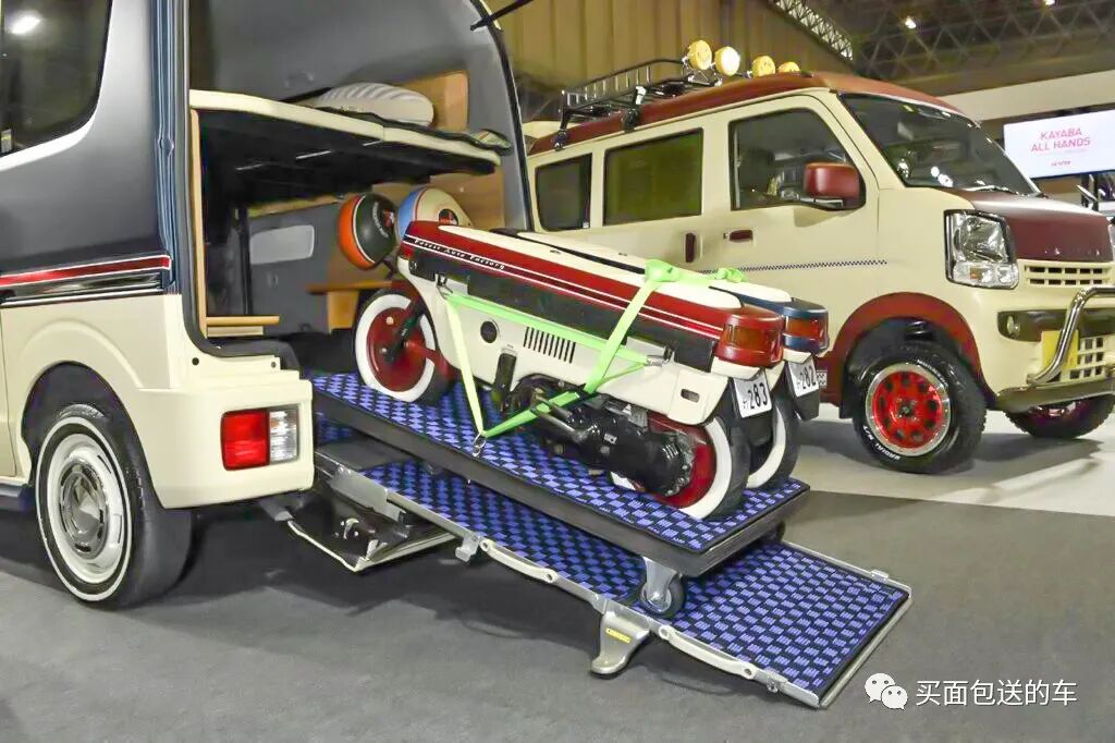 改装作品来自于FAF森林汽车,原型车为SUZUKI DA17V,也就是铃木EVERY 浪迪,前脸保险缸为FAF EVLAR复古套件,并且底盘做了5CM的升高,亮点是车尾部的后备箱制作了收纳本田MOTOCOMPO的机构,这就是 “FAF EVELER MOTO BASE”。