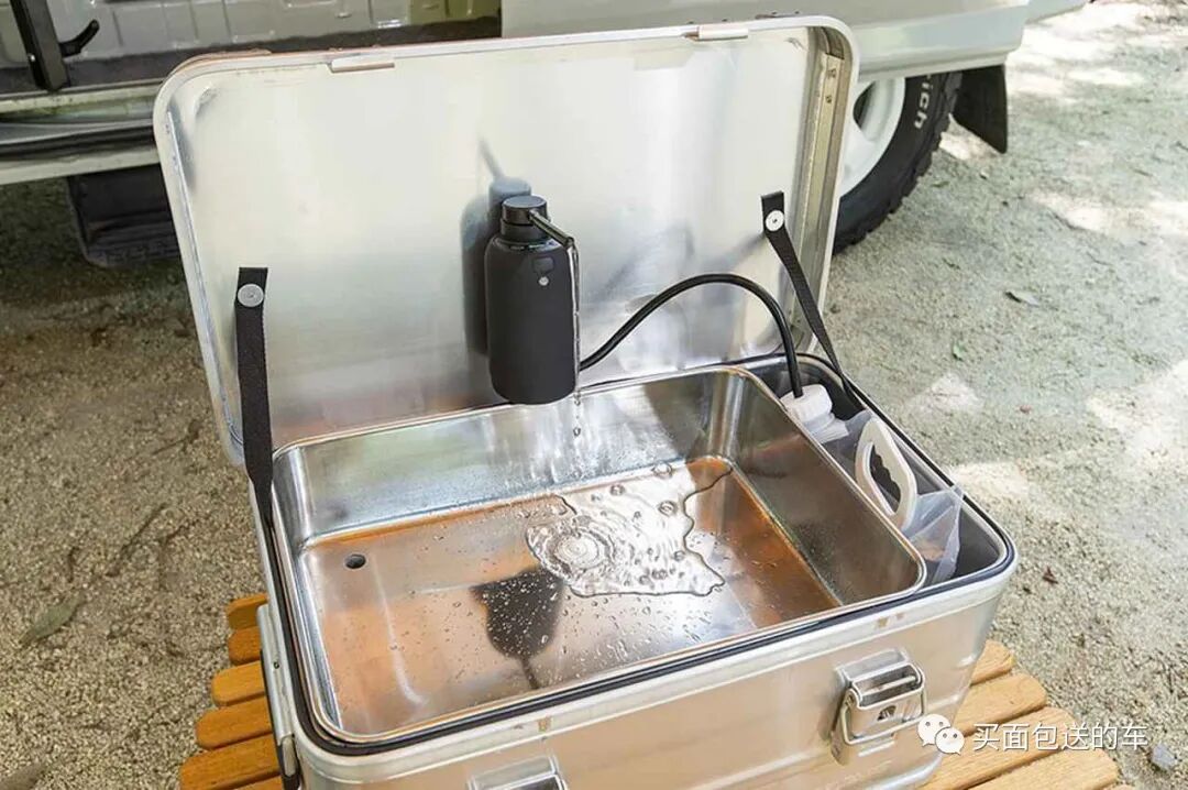 前置的备胎支架除了提升车头的防护能力外,也是用来收纳垃圾袋的车外支架。