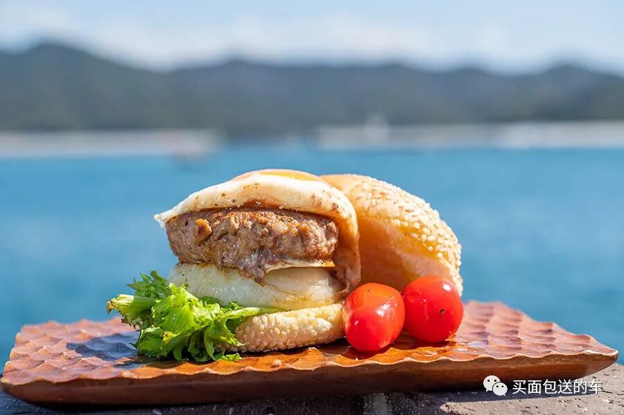 充满了碳水和淡路岛本地洋葱的汉堡作为早饭。
