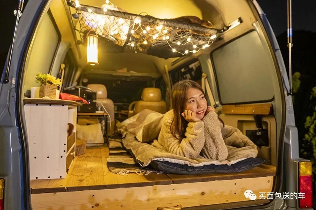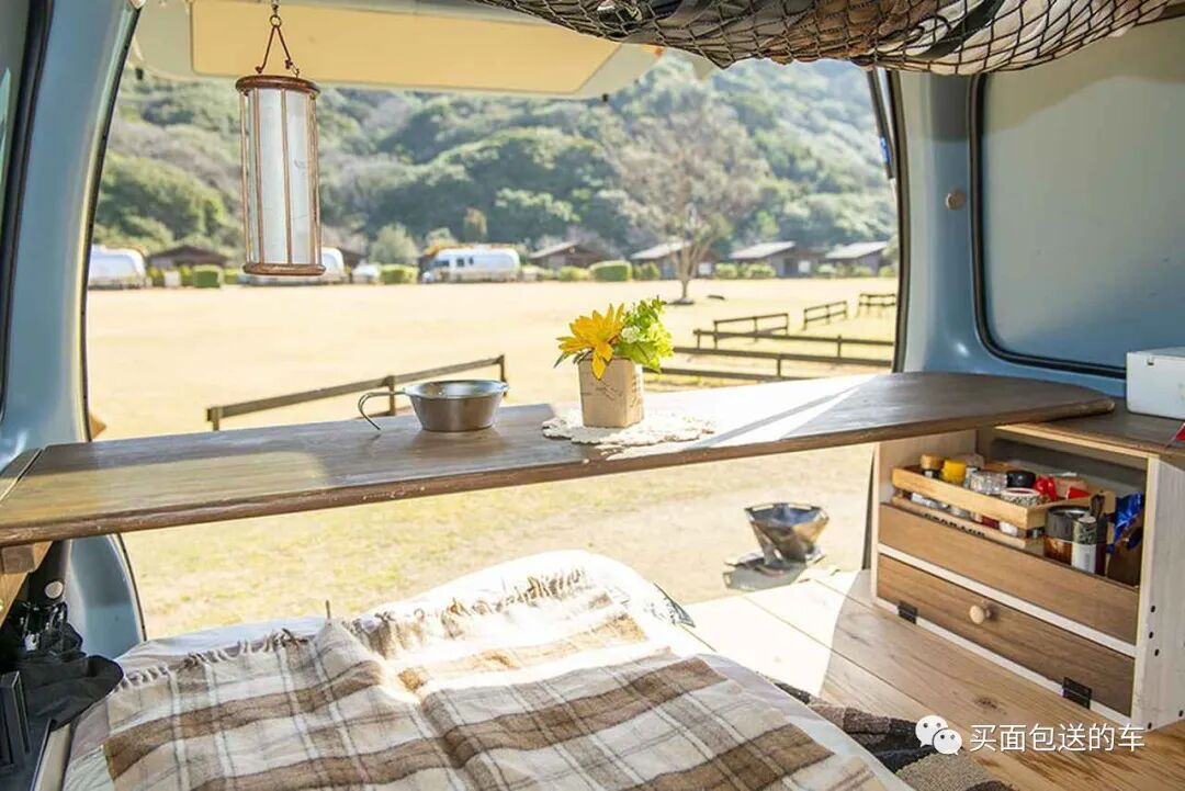 川本宇树并未对车内进行深度改装,只是定制了木质柜体进行收纳,除了车中泊的需要,用木板和柜体在后备箱搭建的桌板。