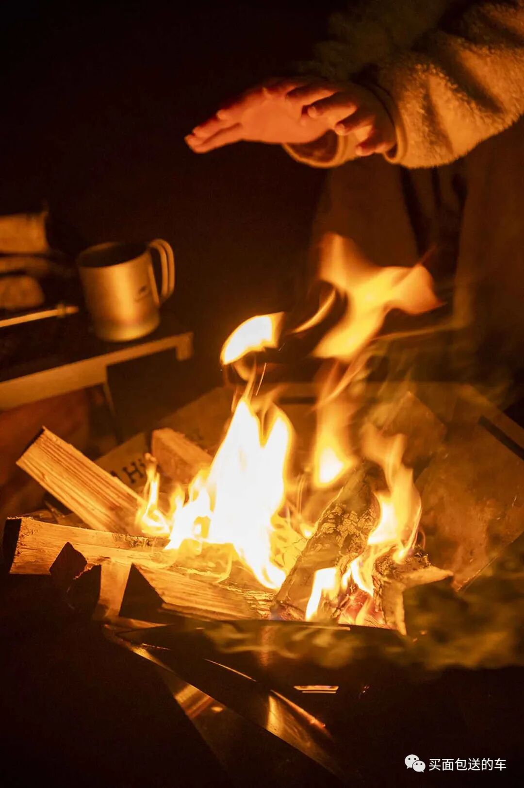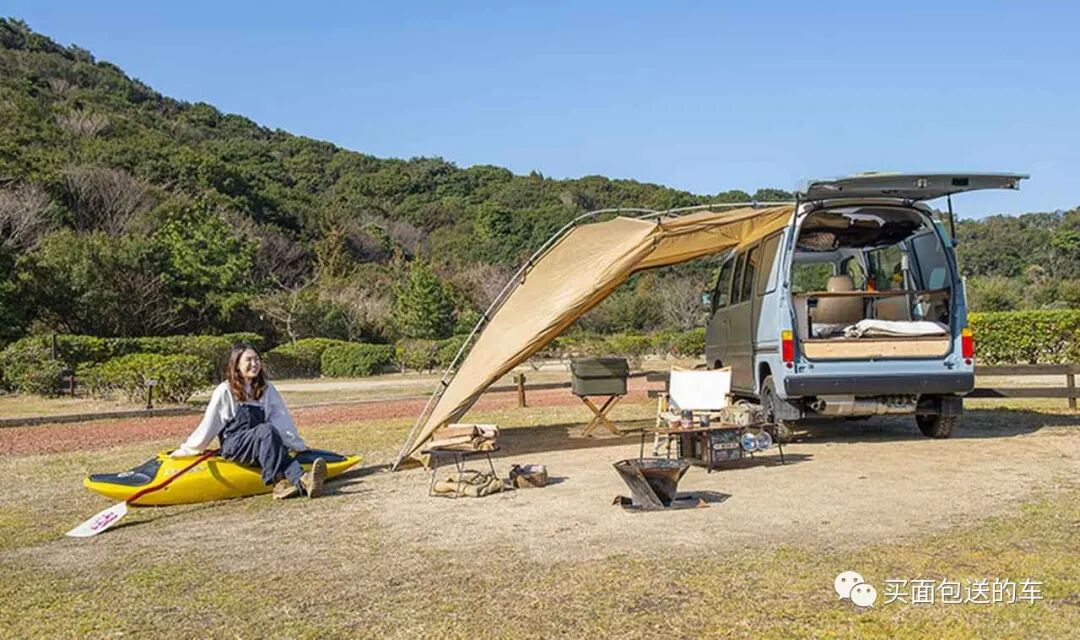 选择准备车中泊的场地,展开篝火盆和车边帐。