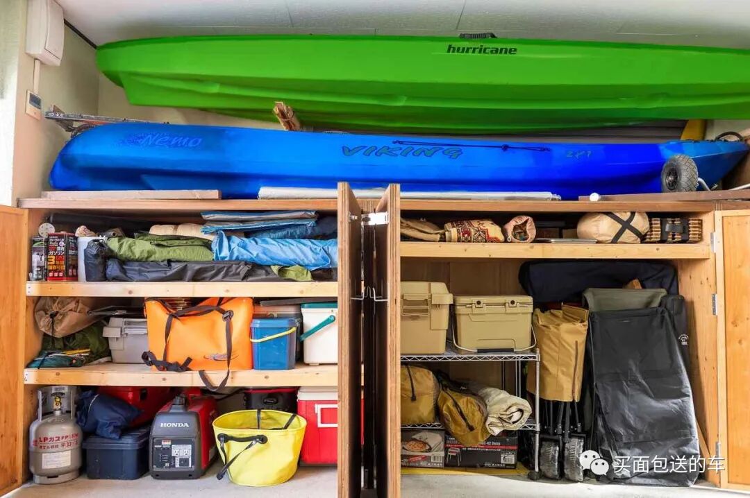 在川本宇树的车库中,有很多路亚和避灾的应急装备,车库的柜体左边为父母的装备,而川本宇树喜欢褐灰色风格,一眼就能区分。