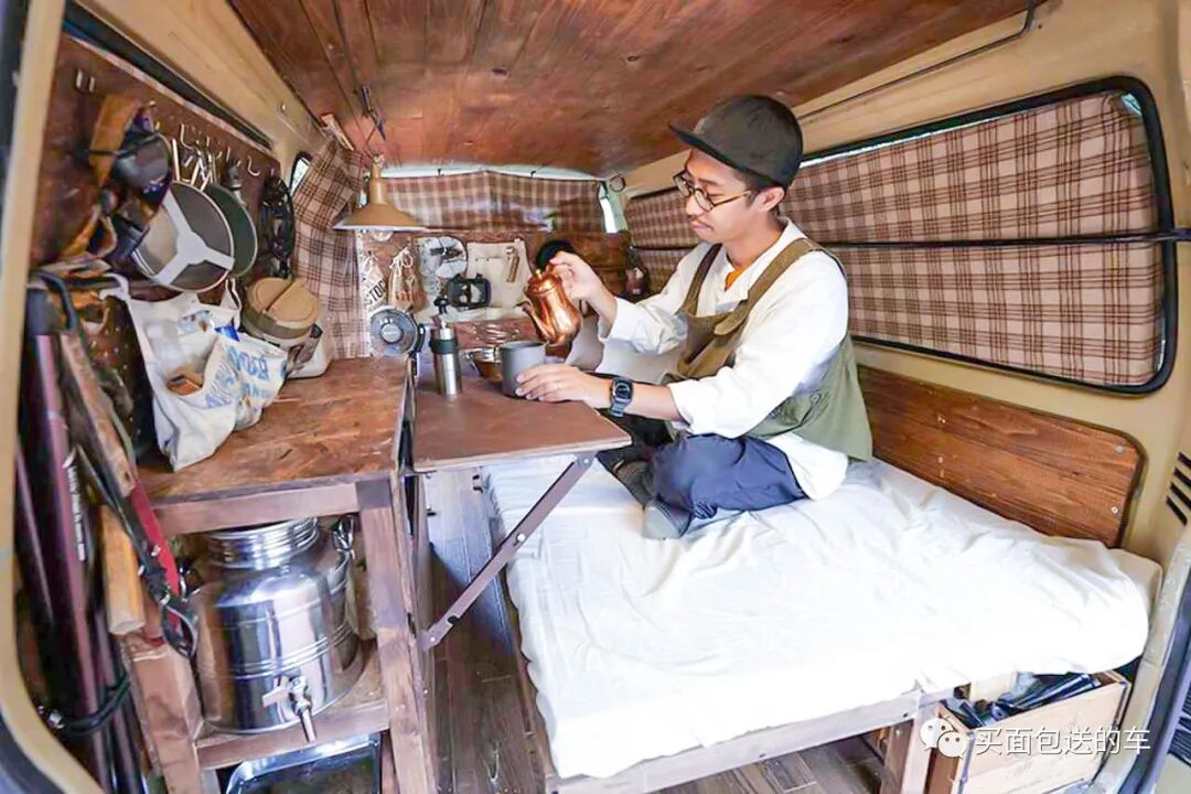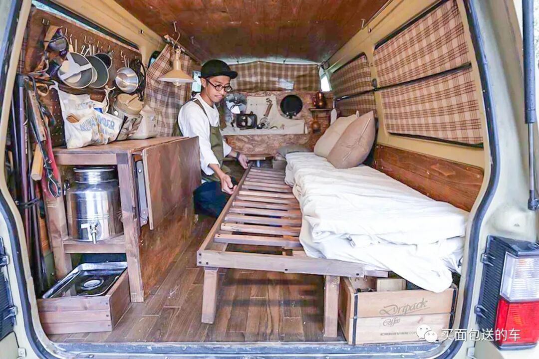 毛亨米先生的马自达第三代 Mazda Bongo Brony面包车,用二手物件进行露营车改装,当然为了匹配现在的工作模式,不少细节都进行了升级改造。