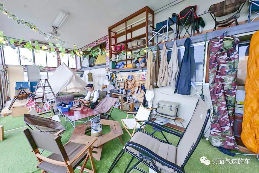 如今他的一份职业是作为露营营地的教练,所以工作室的一处也用于存放展示出售露营装备,当然也是二手露营装备。