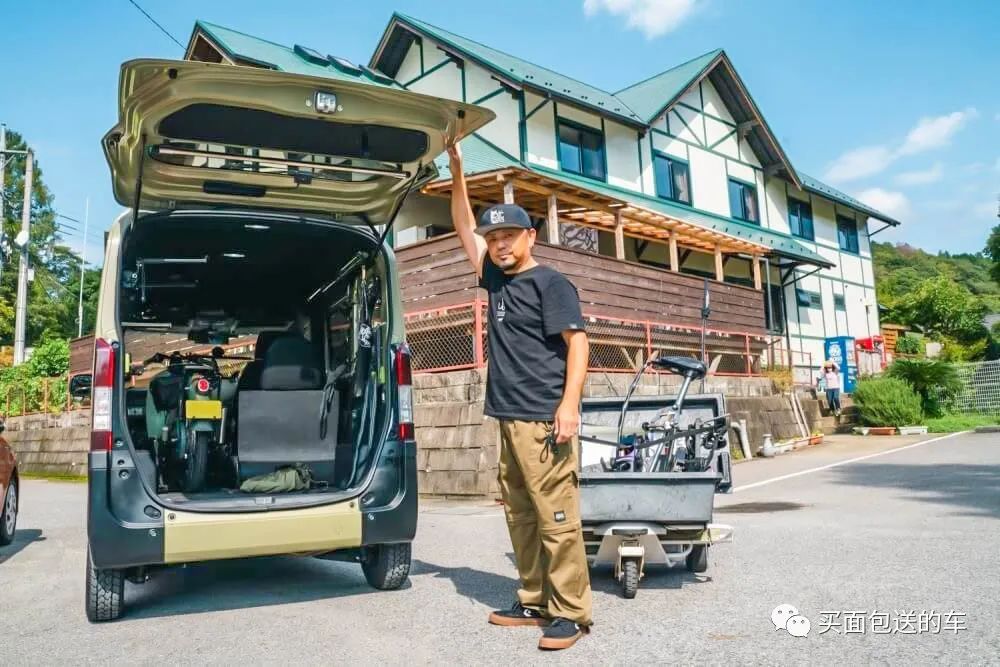 千叶县的堀琢磨先生 和妻子 由纪子热衷于户外活动,为大家展示的是通过本田N-VAN改装的露营车,并携带本田幼兽摩托作为钓鱼的移动基地。