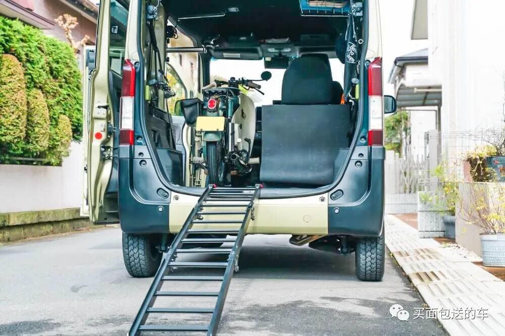 到达目的地后,用铝合金折叠跳板就可以将幼兽摩托从后备箱释放下来,单人就可以完成操作。